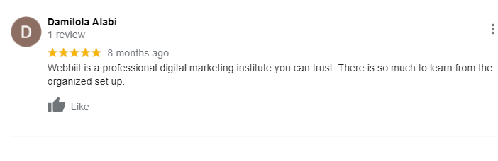 After this Training you would have gained all the skills, tactics, knowledge, certification and all the expertise to crush the market, be your own boss or sack your boss, grow any business and make it big online. We will show you how to start your Digital Marketing agency, How to bid for jobs, How to know the best pricing for all your services so that you will not be chasing your customers away as well as you will not be underpriced for your skills.