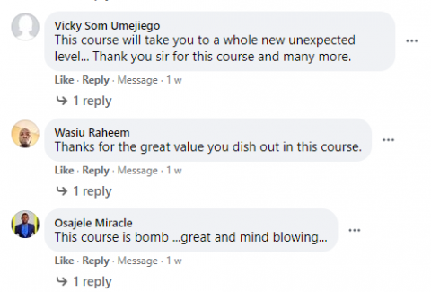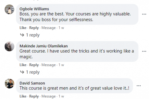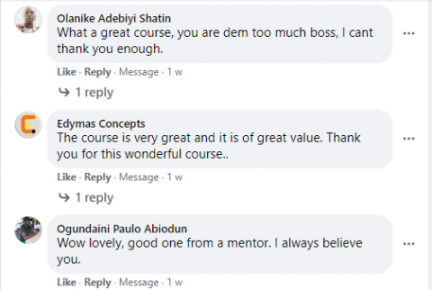 I am so confident that if you implement what you will learn from us which you can never get elsewhere, and then partake in our 90days One Millionaire challenge, your success will sure happen and you will be smiling to the bank every single day with clients rushing you with their money.